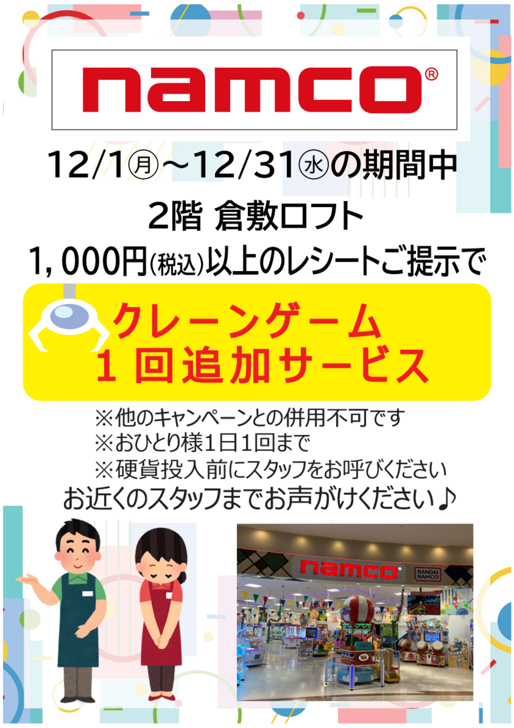 2階 ロフトの1,000円(税込)以上のレシートご提示で