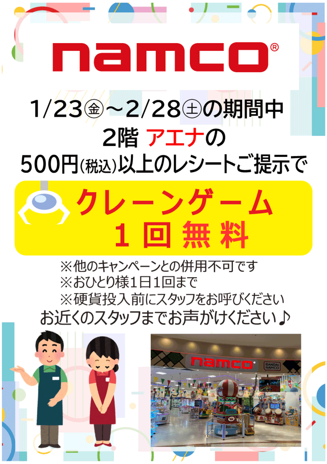 クレーンゲーム1回無料!