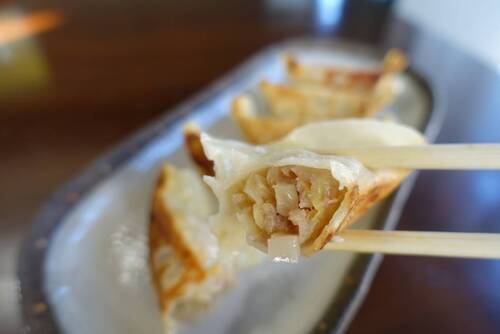 この「ねぎにら」をたっぷり使った「ねぎにら餃子」は、さっぱりしていて何もつけずに食べてもおいしい餃子です。