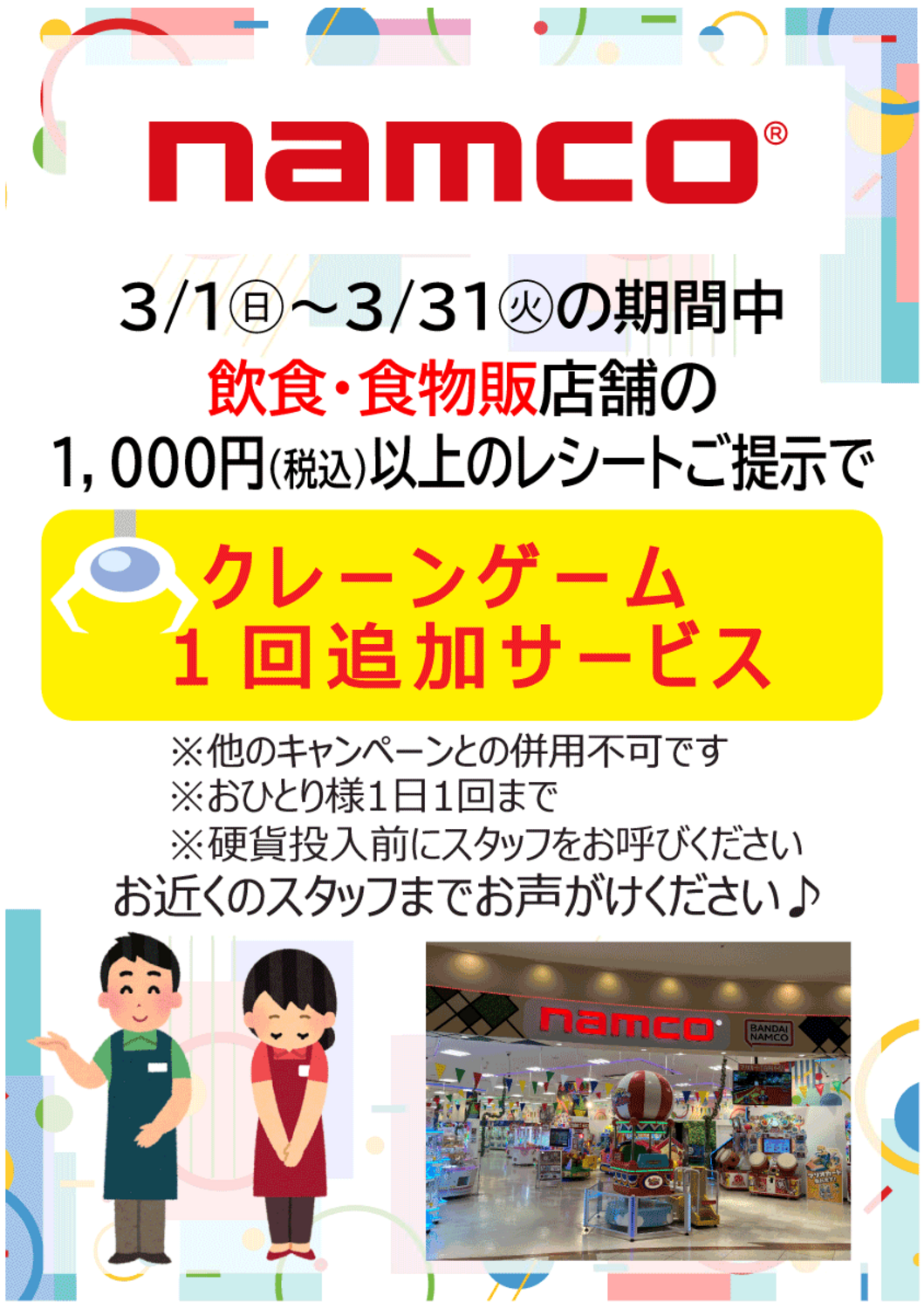 クレーンゲーム1回追加サービス!