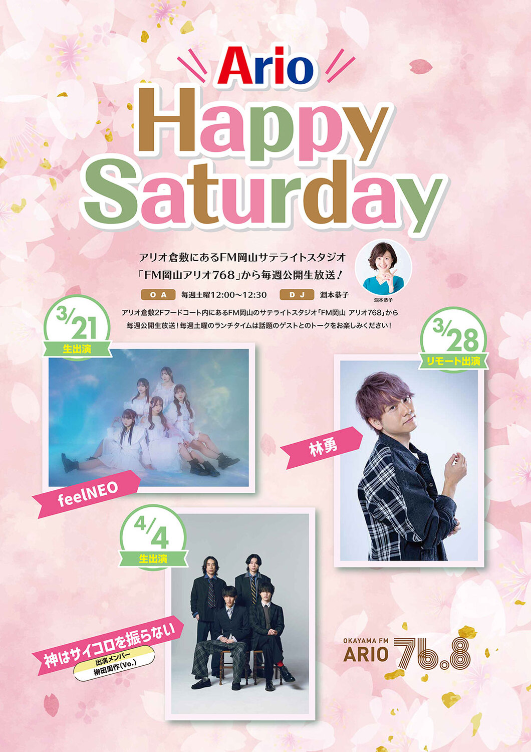 アリオ倉敷2階フードコート内にあるFM岡山のサテライトスタジオ「FM岡山 アリオ768」から公開生放送!