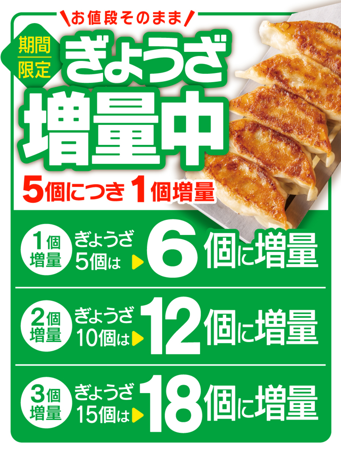 ぎょうざ増量キャンペーン開催中!