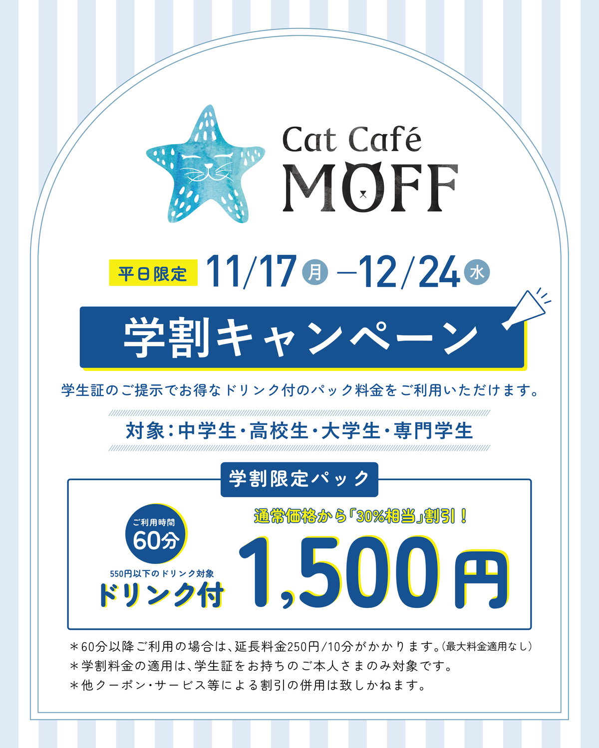📝条件:学生証の掲示(お会計時にご掲示ください。)