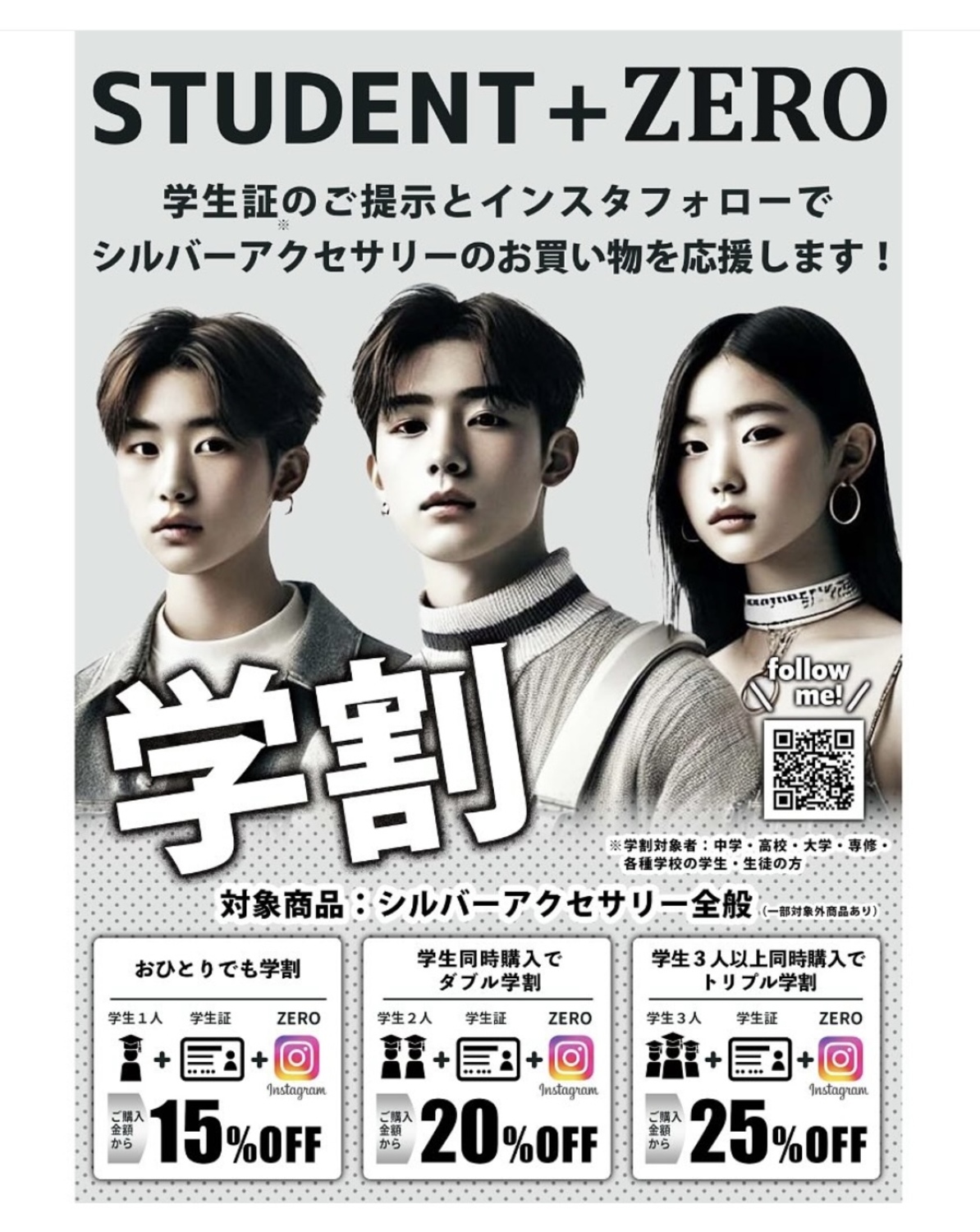 学生証のご掲示とインスタフォローでシルバーアクセサリーのお買い物を応援します!