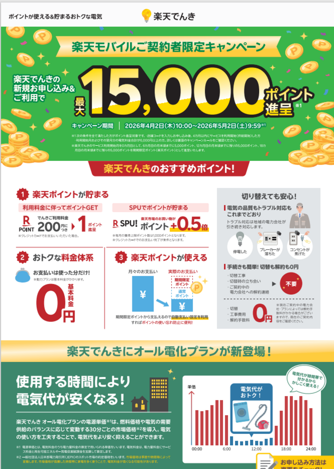 楽天モバイルご利用中の方限定キャンペーンとして、