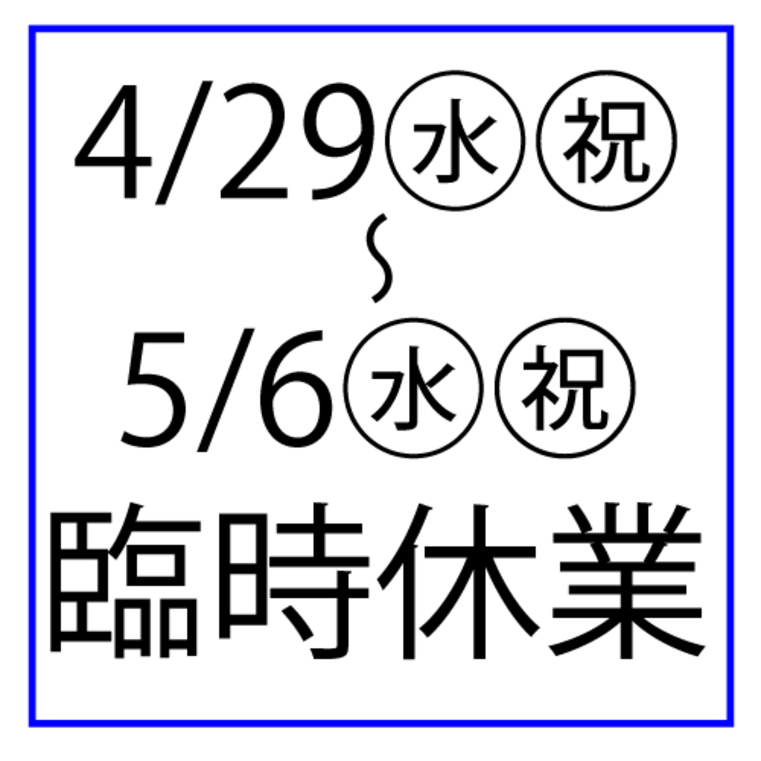 2026年4月29日(水祝)~5月6日(水祝)…休業